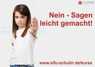 „Nein sagen – leicht gemacht“ stärkt Kinder darin, ihre Gefühle ernst zu nehmen und klare Grenzen zu setzen. In altersgerechten, spielerischen Übungen trainieren sie Stimme, Körperhaltung und Auftreten. Sie lernen, laut „Nein“ zu sagen und ihre Wünsche deutlich zu formulieren. Besonderer Wert liegt auf Selbstbewusstsein, Respekt und Prävention – damit Kinder weder Opfer noch Täter werden.